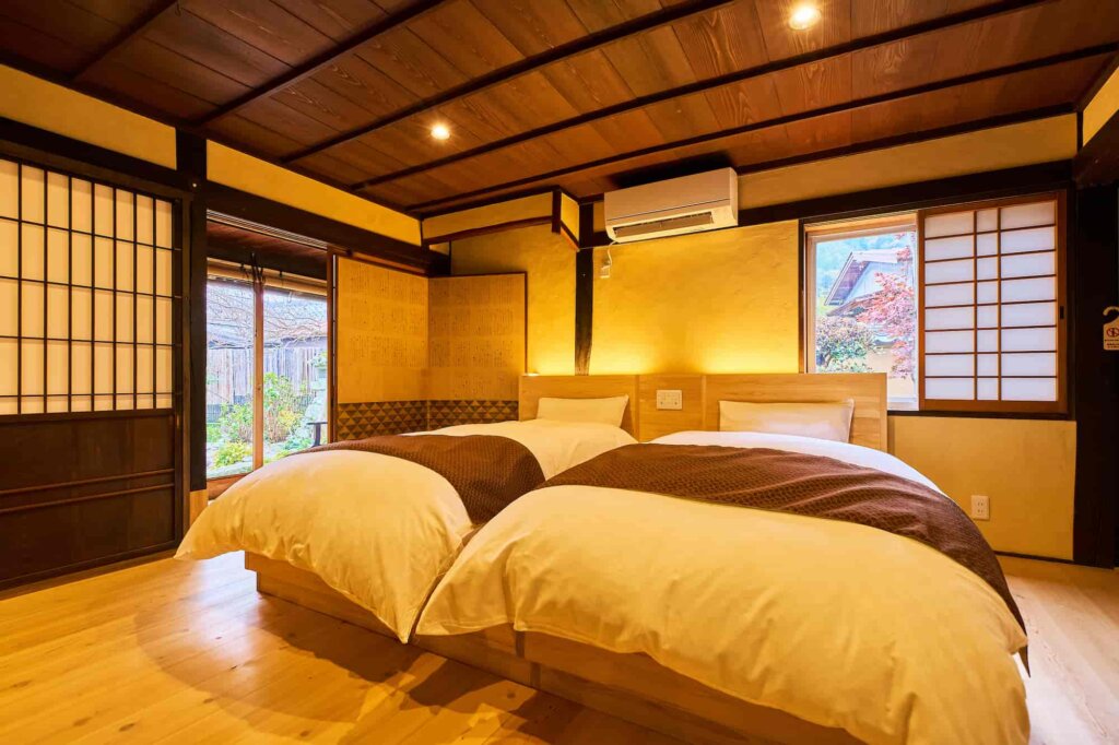 当住宅の主屋が一棟貸しの宿泊施設となっております。播但一揆の前後に鐵十郎のもとを訪れた農民たちのドラマ。地域医療の拠点として、命の誕生と人々の暮らしに寄り添った産院。この場所で刻まれた歴史に想いを馳せながら、日頃の忙しさから少し離れて、ごゆっくりとおくつろぎください。